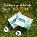 Bestiller du VitaePro i dag, får du et fantastisk fødselsdagstilbud til kun 99 kr. for første pakke, der dækker forbrug i hele 6 uger.